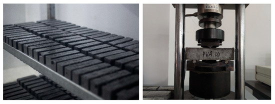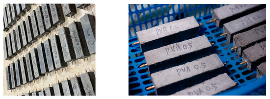 The experimental program utilized 40 × 40 × 160 mm prismatic specimens (Figure 1) for mechanical property evaluation. Following standard curing room conditioning, specimens underwent strength testing at 7-day and 28-day intervals using computer-controlled hydraulic equipment compliant with GB/T 17671-2021 [51]. Flexural strength was measured at 50 N/s with automatic load recording, while compressive tests employed 2.4 kN/s loading under instrument-controlled conditions.