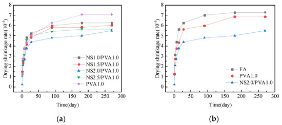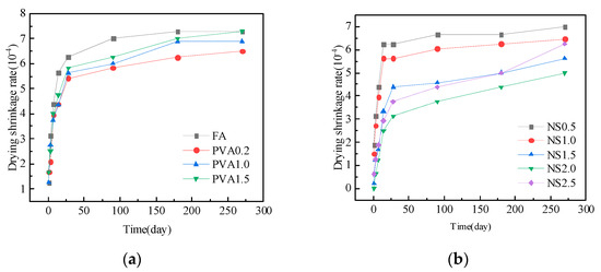 Influence of PVA fiber (a) and NS (b) on the drying shrinkage of mortar.