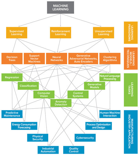 - Plathottam, S.J.; Rzonca, A.; Lakhnori, R.; Iloeje, C.O. A Review of Artificial Intelligence Applications in Manufacturing Operations. J. Adv. Manuf. Process. 2023, 5, e10159. [Google Scholar] [CrossRef]
