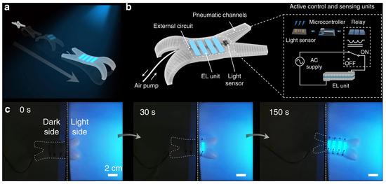 - Zhang, P.; Lei, I.M.; Chen, G.; Lin, J.; Chen, X.; Zhang, J.; Cai, C.; Liang, X.; Liu, J. Integrated 3D Printing of Flexible Electroluminescent Devices and Soft Robots. Nat. Commun. 2022, 13, 4775. [Google Scholar] [CrossRef]