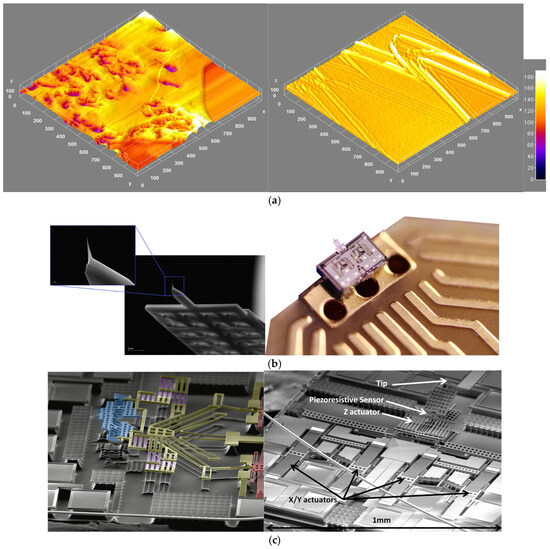 - Sarkar, N.; Strathearn, D.; Lee, G.; Olfat, M.; Mansour, R.R. A 0.25 mm3 Atomic Force Microscope on-a-Chip. In Proceedings of the 2015 28th IEEE International Conference on Micro Electro Mechanical Systems (MEMS), Estoril, Portugal, 18–22 January 2015; pp. 732–735. [Google Scholar] [CrossRef]