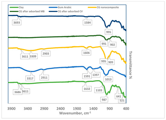 - Alorabi, A.Q.; Hassan, M.S.; Alam, M.M.; Zabin, S.A.; Alsenani, N.I.; Baghdadi, N.E. Natural Clay as a Low-Cost Adsorbent for Crystal Violet Dye Removal and Antimicrobial Activity. Nanomaterials 2021, 11, 2789. [Google Scholar] [CrossRef]