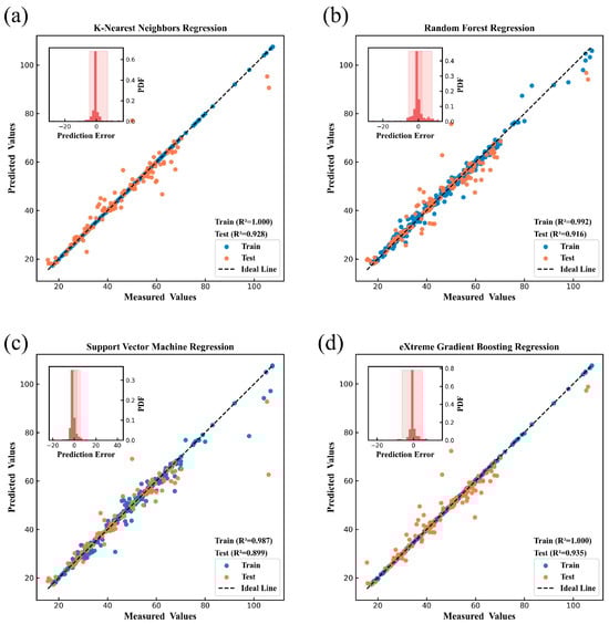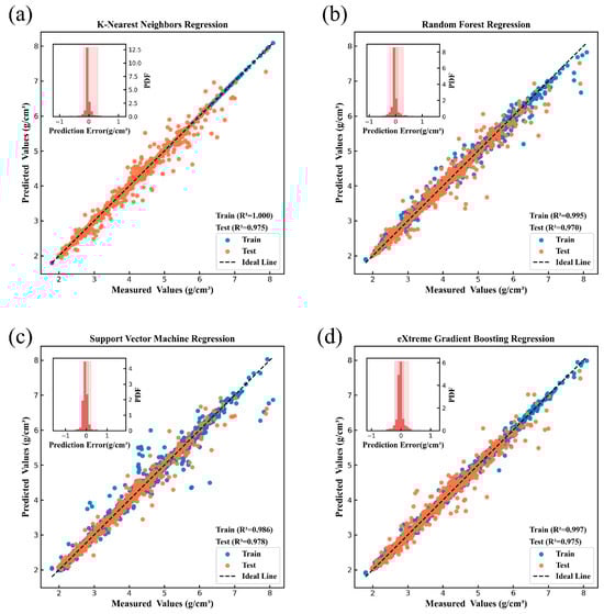 Prediction of density under (a) KNN, (b) RF, (c) SVM, (d) XGBoost.