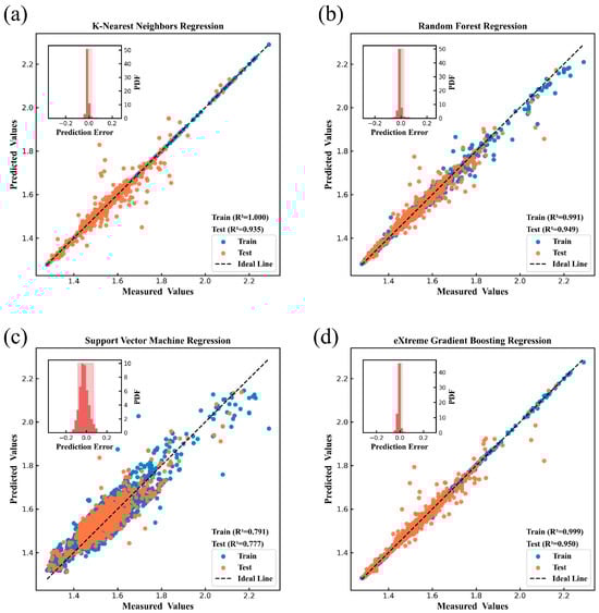 Refractive index prediction under (a) KNN, (b) RF, (c) SVM, (d) XGBoost.