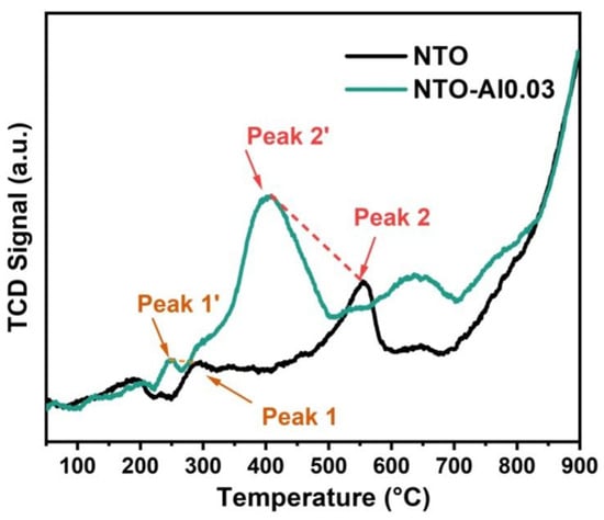 The H2-TPR diagrams of NTO and NTO-Al0.03 samples.