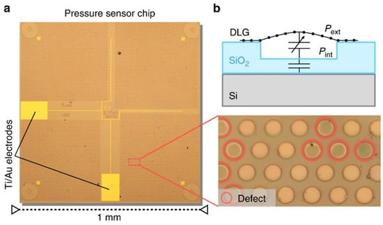 - Davidovikj, D.; Scheepers, P.H.; van der Zant, H.S.J.; Steeneken, P.G. Static Capacitive Pressure Sensing Using a Single Graphene Drum. ACS Appl. Mater. Interfaces 2017, 9, 43205–43210. [Google Scholar] [CrossRef] [PubMed]