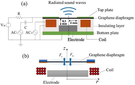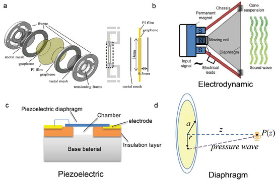 - Guo, X.; An, J.; Wu, H.; Cai, Z.; Wang, P. Graphene Acoustic Transducers Based on Electromagnetic Interactions. Ultrasonics 2021, 114, 106420. [Google Scholar] [CrossRef]