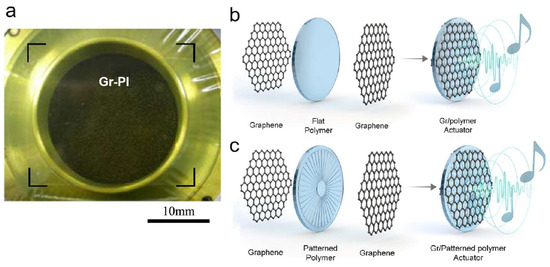 - Lee, K.-R.; Jang, S.H.; Jung, I. Acoustic Performance of Dual-Electrode Electrostatic Sound Generators Based on CVD Graphene on Polyimide Film. Nanotechnology 2018, 29, 325502. [Google Scholar] [CrossRef]