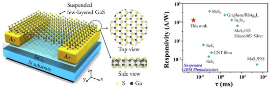 - Zhong, W.; Liu, Y.; Yang, X.; Wang, C.; Xin, W.; Li, Y.; Liu, W.; Xu, H. Suspended Few-Layer GaS Photodetector with Sensitive Fast Response. Mater. Des. 2021, 212, 110233. [Google Scholar] [CrossRef]