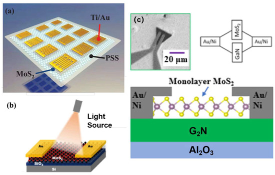 - Vashishtha, P.; Abidi, I.H.; Giridhar, S.P.; Verma, A.K.; Prajapat, P.; Bhoriya, A.; Murdoch, B.J.; Tollerud, J.O.; Xu, C.; Davis, J.A.; et al. CVD-Grown Monolayer MoS2 and GaN Thin Film Heterostructure for a Self-Powered and Bidirectional Photodetector with an Extended Active Spectrum. ACS Appl. Mater. Interfaces 2024, 16, 31294–31303. [Google Scholar] [CrossRef]