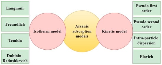 Different types of isotherm and kinetic models for arsenic adsorption.
