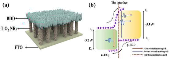 APA StyleGe, S., Sang, D., Li, C., Shi, Y., Wang, Q., & Xiao, D. (2025). Research Progress and Future Perspectives on Photonic and Optoelectronic Devices Based on p-Type Boron-Doped Diamond/n-Type Titanium Dioxide Heterojunctions: A Mini Review. Nanomaterials, 15(13), 1003. https://doi.org/10.3390/nano15131003