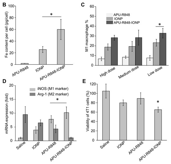 3.4. Internalization of APU-R848-IONPs and the Re-Polarization Effect in Macrophages In Vitro