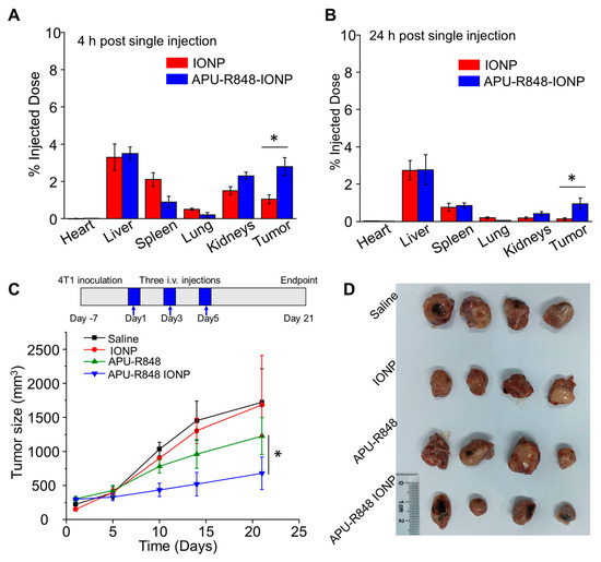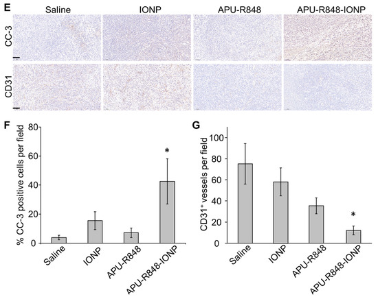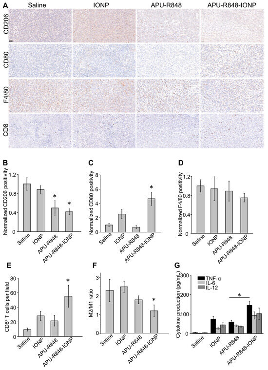 3.5. APU-R848-IONPs Demonstrated Significant Tumor Inhibition in 4T1 Model