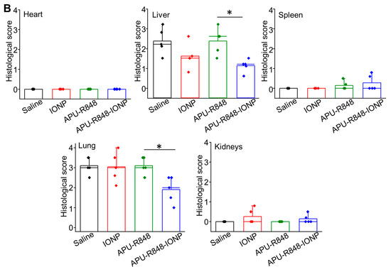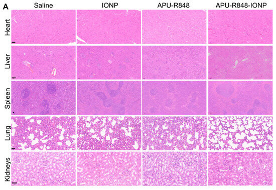 3.7. Biosafety Evaluation of APU-R848-IONP Treatment
