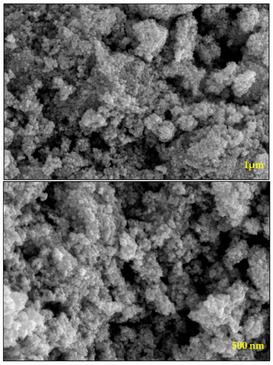The morphology of WO3 particles was investigated using TEM, as shown in Figure 5. The TEM images revealed the presence of slight agglomeration; however, the agglomeration was minimal and did not significantly affect the dispersion of particles. The sizes of the particles were determined from TEM analysis, which were in the range of 10–25 nm. A uniform distribution of WO3 particles was further confirmed through SEM, elemental mapping, and TEM imaging. The SEAD analysis attached to the TEM instrument showed corresponding planes for WO3 (Inset Figure 1). The SEAD results were consistent with the XRD analysis, confirming the formation and crystallinity of WO3.