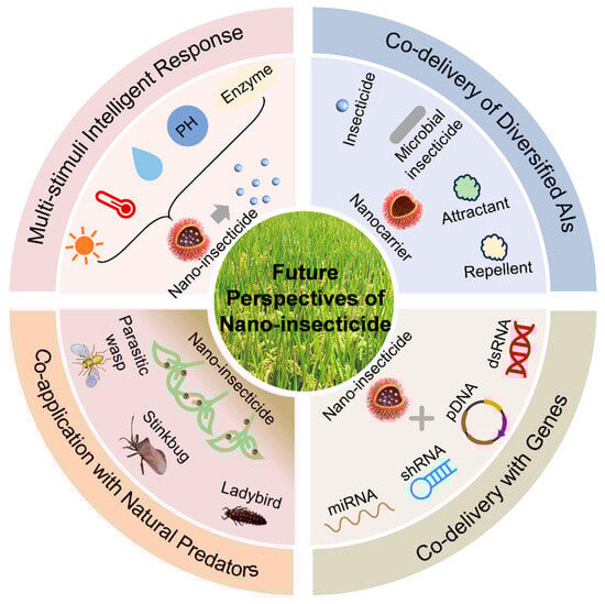 Future perspectives of nano-insecticides for pest management. These integrated strategies can improve the control efficacy and reduce the adverse environmental impact of insecticides.