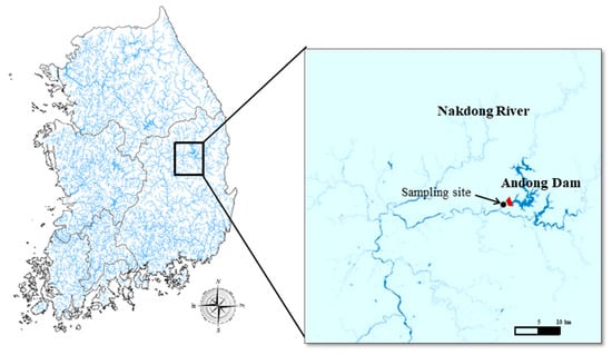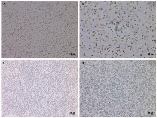 In order to separate S. meneghinianus from freshwater diatom, collection must first be performed. Since this study aims to explore the possibility of utilizing biosilica, the collection site was selected for the Nakdonggang River’s upper water system, where there is little inflow of pollutants in Korea. Specifically, water samples were collected the headwater of the Nakdong River (Figure 1). In addition, basic water quality parameters, including water temperature, pH, salinity, electrical conductivity, dissolved oxygen (DO), and turbidity, were measured on-site using a portable water quality measuring device (ProDDS, YSI, Yellow Springs, OH, USA) to understand the environmental conditions of the collection site (Table 1). After the samples were transported to the laboratory, the presence of diatoms was confirmed using a microscope. Once diatoms were identified, individual diatom cells were isolated using a micropipette. Each isolated single cell was inoculated into a 96-well plate containing culture medium. As cell proliferation progressed, sequential subculturing was performed by transferring the cells into progressively larger wells, including 48-well, 24-well, 12-well, and 6-well plates, to adapt the cells to larger culture environments. Finally, the diatom cultures grown from single cells were transferred to cell culture flasks for continuous subculturing. Through this process, S. meneghinianus cultures were successfully established.