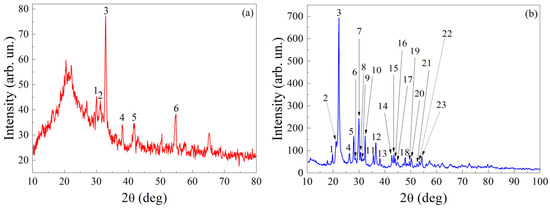 The X-ray diffraction images for samples with TbMn2O5 (a) and LiCoPO4 (b) particles.