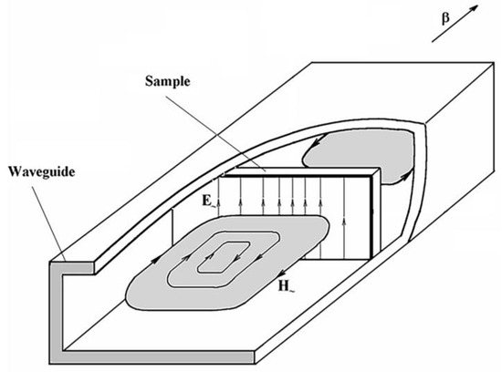 The microwave measurements are carried out using the wave transmission/reflection method at room temperature [35]. The measurements are performed in the frequency range 26 to 38 GHz. The scheme of the sample disposition in a waveguide is shown in Figure 3. The power transmission T and reflection R coefficient modules and their frequency dependences are measured.