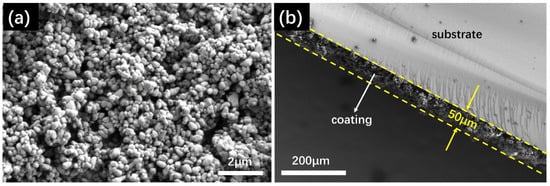 (a) Surface morphology of the coating; (b) the cross-sectional image of the coating.