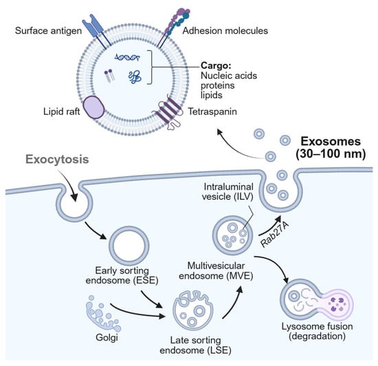 - Hessvik, N.P.; Llorente, A. Current Knowledge on Exosome Biogenesis and Release. Cell. Mol. Life Sci. 2018, 75, 193–208. [Google Scholar] [CrossRef]