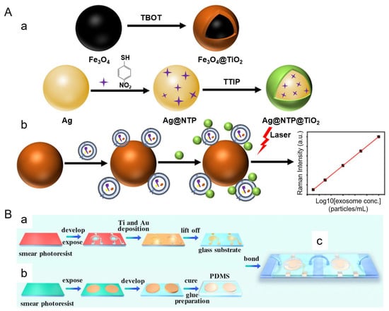- Zheng, S.; Su, N.; Zhang, R.; Chen, X.; Zhang, J.; Gao, M.; Zhang, X. A Surface-Enhanced Raman Scattering Platform for Rapid, Sensitive, and Cost-Effective Quantitative Analysis of Exosomes Based on Titanium Dioxide Functionalized Nanomaterials. Anal. Chem. 2025, 97, 6320–6328. [Google Scholar] [CrossRef]