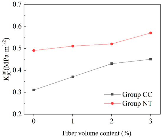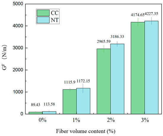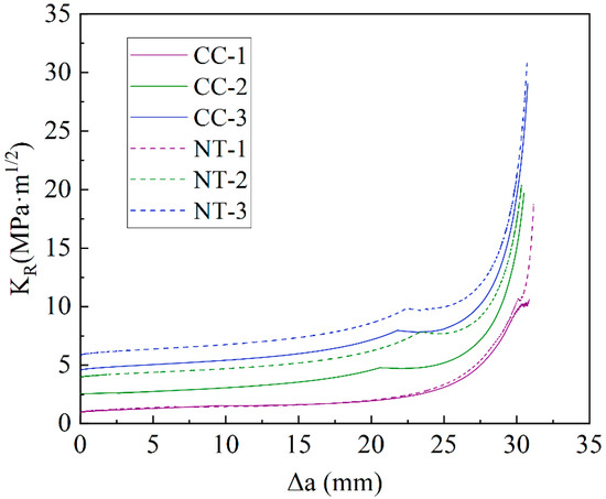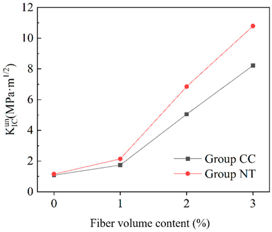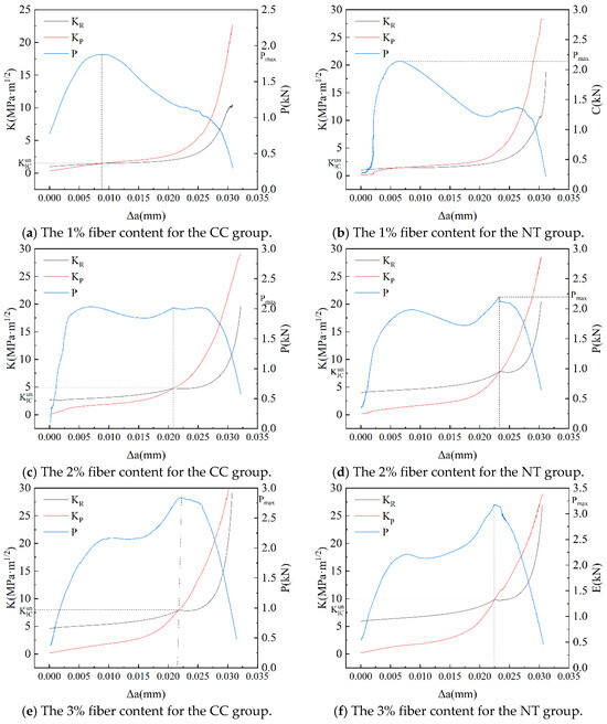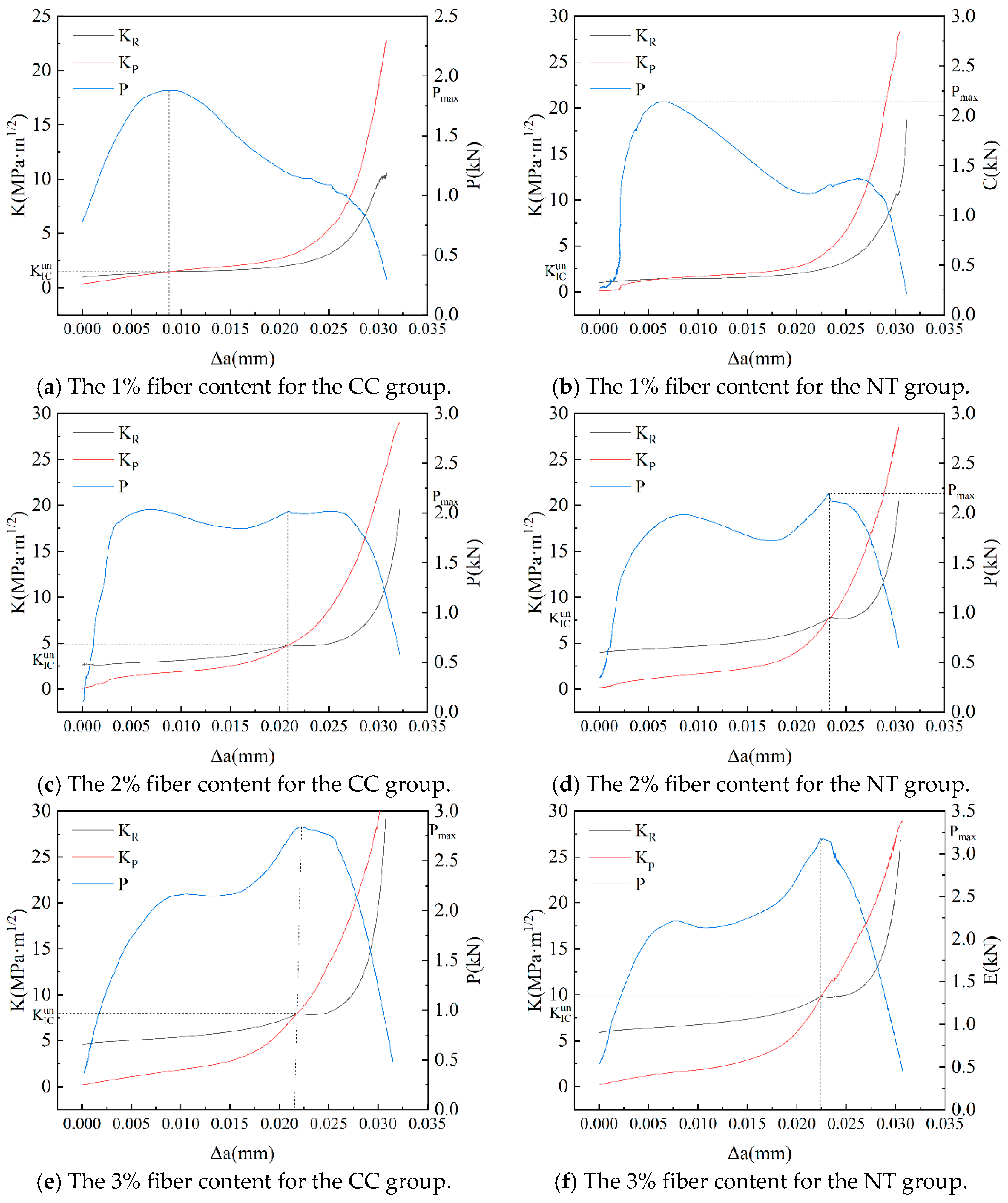 - The crack propagation resistance KR of MPC shows a positive correlation with the crack propagation length and exhibits a trend of slow initial growth followed by accelerated growth. Furthermore, for the same fiber volume fraction, the NT group shows higher crack propagation resistance compared to the CC group, indicating that NT has a certain effect on improving the crack propagation resistance of MPC.