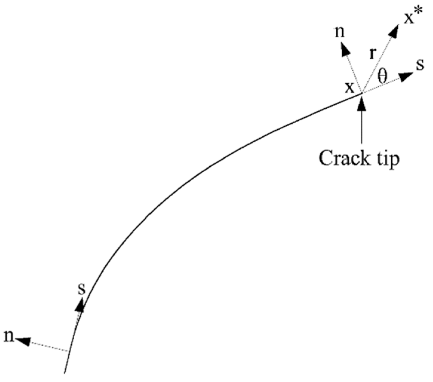 - Moës, N.; Dolbow, J.; Belytschko, T. A finite element method for crack growth without remeshing. Int. J. Numer. Methods Eng. 1999, 46, 131–150. [Google Scholar] [CrossRef]