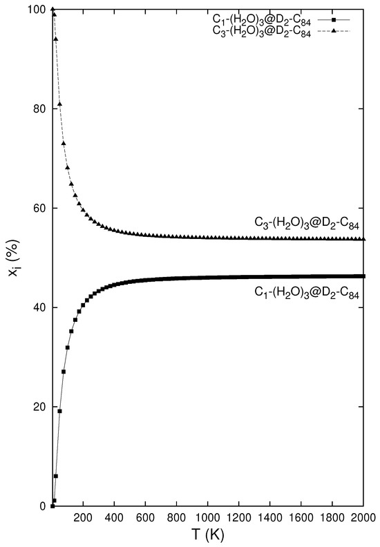 Relative concentrations [42] of the (H2O)3@(22)-C84 isomers computed at the M06-2X/6–31++G** level.