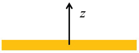 First, it is necessary to determine the appropriate energy functional for calculating the ground-state density. In this section, we compute the distribution of a jellium slab using QHT based on Equations (12) and (14) and compare it with DFT results. For the DFT calculations, the ground-state density of an infinite slab in the plane (see Figure 1) was obtained using the open-source software Octopus (version 12.0) [30,31]. The results are stable when the slab thickness in the z direction exceeds , where [32,33].