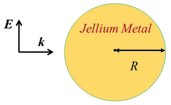 Schematic diagram of the calculation setup. A plane wave is incident perpendicular to the z-axis. The absorption cross-section of sodium jellium nanospheres is evaluated using the gel model.