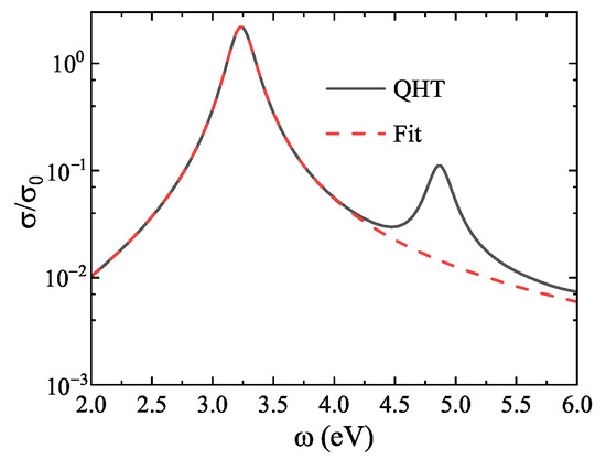 To extract the resonance features, we follow the spectral fitting procedure described in Ref. [24], where only the first localized surface plasmon (LSP) peak is fitted. As an example, Figure 5 shows the normalized absorption cross-section for a nanosphere with 1074 electrons. The fitted curve accurately reproduces the first LSP response.