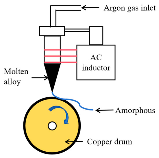 Schematic diagram of production of amorphous Fe73.5Cu1Nb3Si13B9.5 ribbons.