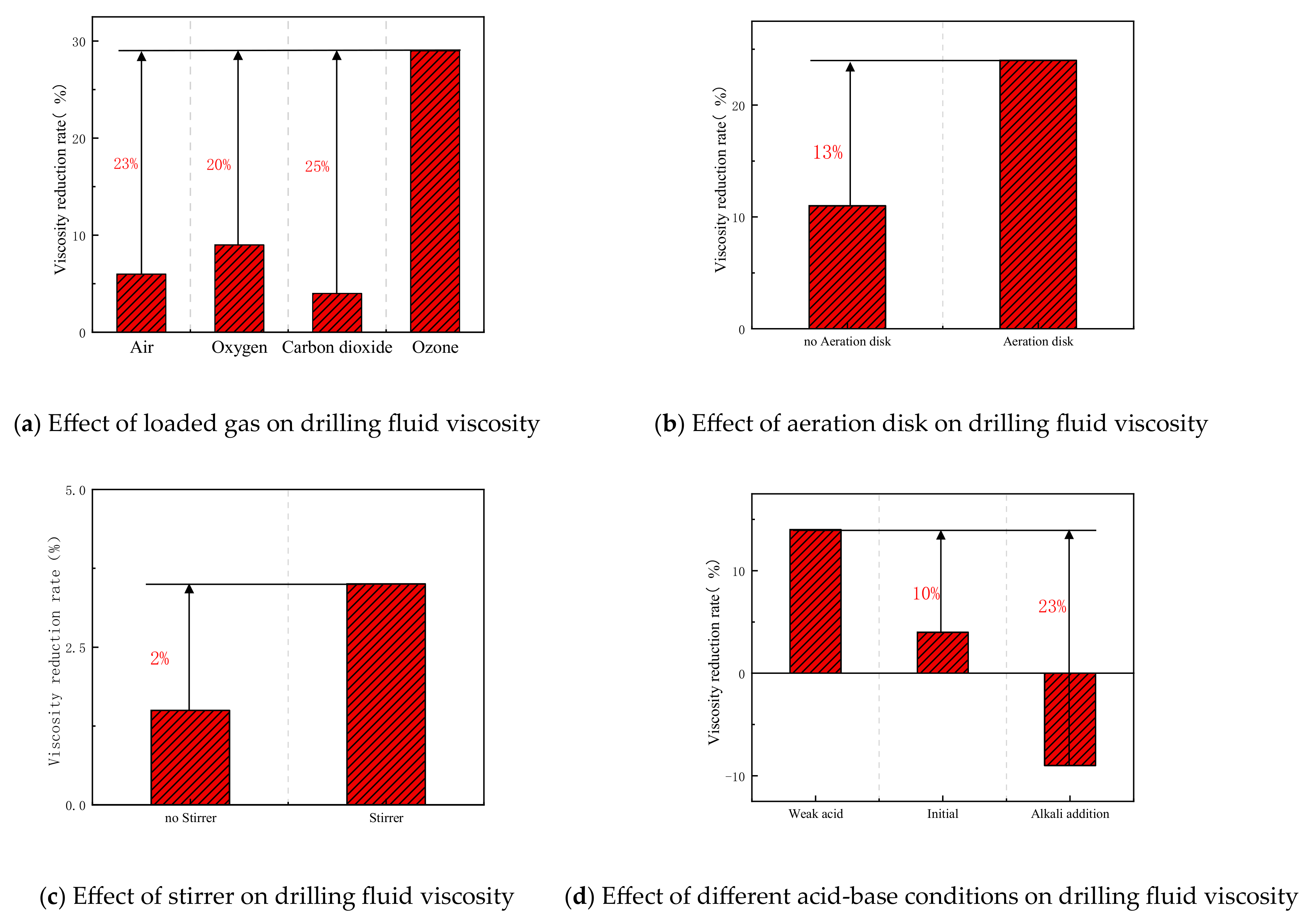 2.3.1. Viscosity Reduction Treatment of Original Drilling Fluid Using Ozone Fine Bubbles