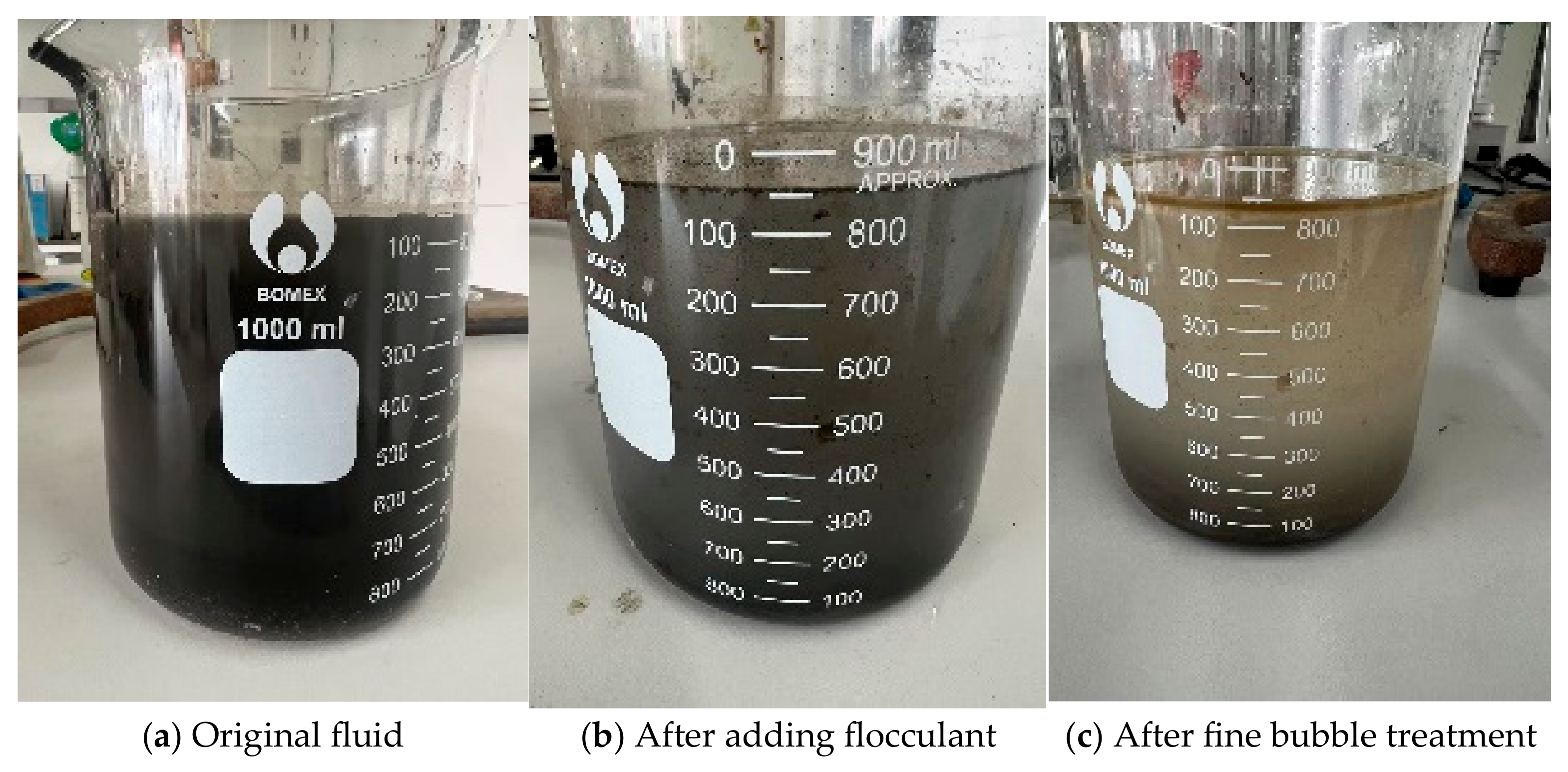 - Wang, R.Q.; Ji, Y.Z.; Lan, Q.Q. Experimental study on treatment of drilling engineering wastewater by ozone micro-nano bubble technology for oil and gas fields. J. Environ. Eng. Technol. 2024, 14, 1151–1157. [Google Scholar]