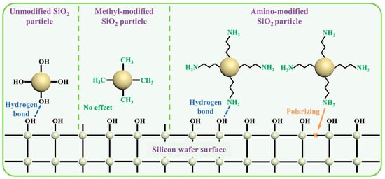 - Pan, G.; Gu, Z.; Zhou, Y.; Li, T.; Gong, H.; Liu, Y. Preparation of Silane Modified SiO2 Abrasive Particles and Their Chemical Mechanical Polishing (CMP) Performances. Wear 2011, 273, 100–104. [Google Scholar] [CrossRef]