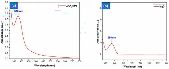 UV–visible spectra of (a) ZrO2; (b) MgO NPs.