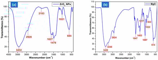 FT-IR spectrum of (a) ZrO2; (b) MgO NPs.