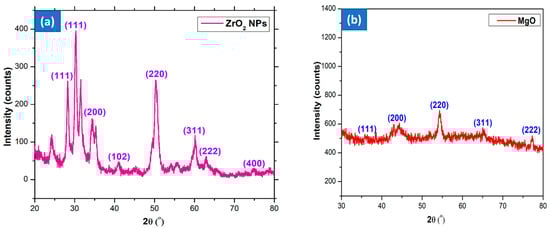 XRD pattern of biosynthesized (a) ZrO2; (b) MgO NPs.