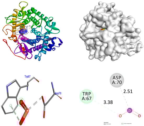 Molecular docking interaction of ZrO2 and MgO NPs against protein 2QV4.