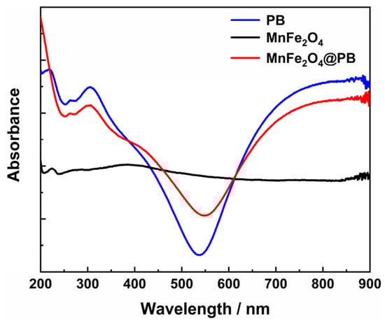 UV–Vis–NIR spectra of PB, MnFe2O4, and MnFe2O4@PB.