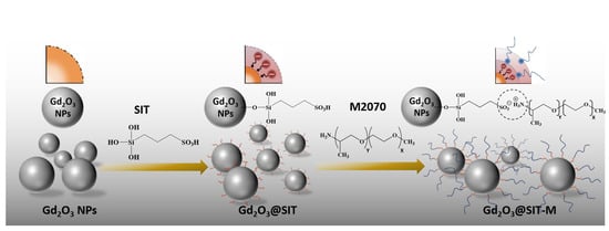 3 and silanol groups from SIT molecules. Subsequently, an additional polyether amine (M2070) layer is constructed onto the Gd
