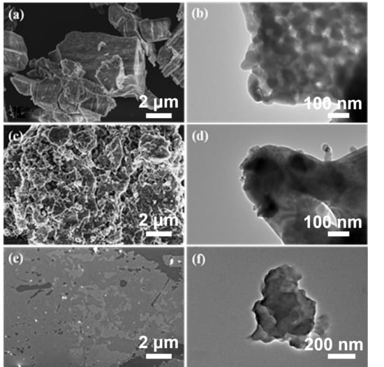Measurements: The attenuated total reflection infrared (ATR-IR) spectroscopy was conducted by a smart ATR-IR spectrometer (NicoletiS10, Thermo Fisher Scientific, Waltham, MA, USA) equipped with a smart OMNI reflection ranging from 400 to 4000 cm−1. Zeta potentials of samples were analyzed by a zeta potential analyzer (Brookhaven Instruments, Nashua, USA). Contact angle measurements were performed using a contact angle goniometer (Theta Flex, Biolin, Finland). Thermo-gravimetric analysis (STA 449F5, Netzsch, Germany) experiments were carried out under a N2 atmosphere with a heating rate of 5 °C/min. XRD patterns were recorded on an X-ray diffractometer (D8 ADVANCE, Bruker, Germany) focus advanced X-ray diffractometer operated at 40 kV and 40 mA using a Cu Ka radiation of wavelength (λ = 1.5406 Å). The equipment was calibrated by a standard silicon sample before measurement. Scanning electron microscopy (SEM) images were obtained from a field-emission scanning electron microscopy (FESEM, Apreo HiVac, FEI, Hillsboro, USA), at an accelerating voltage of 5 kV. Samples were dispersed in aqueous solution, attached on the conductive carbon adhesive tape, dried in a vacuum oven and then sputter-coated with 5 nm gold before observation. Transmission electron microscope (TEM, JEM-2100F, JEOL, Tokyo, Japan) images were obtained by evaporating a drop of aqueous dispersion of samples on carbon-coated copper grids, followed by measurement on a Titan TEM operating at 120 kV.