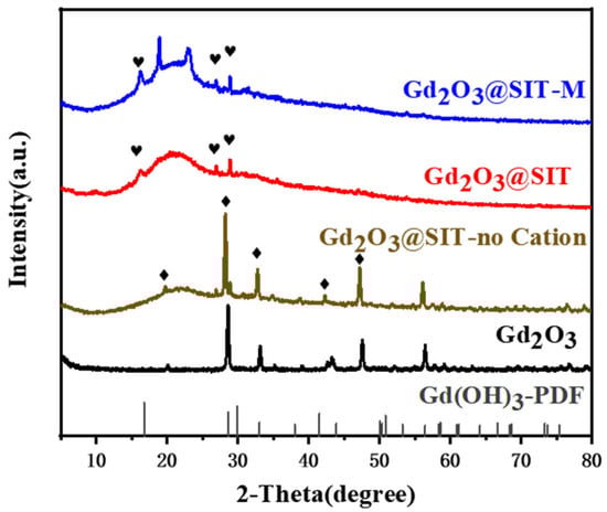 3 before ion-exchange treatment. However, after passing through the cation exchange resin, all modified samples uniformly exhibited a phase conversion to Gd(OH)
