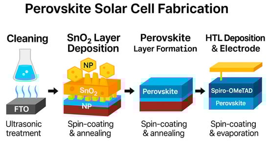 Fabrication flow of perovskite solar cell with layered structure and process parameters.