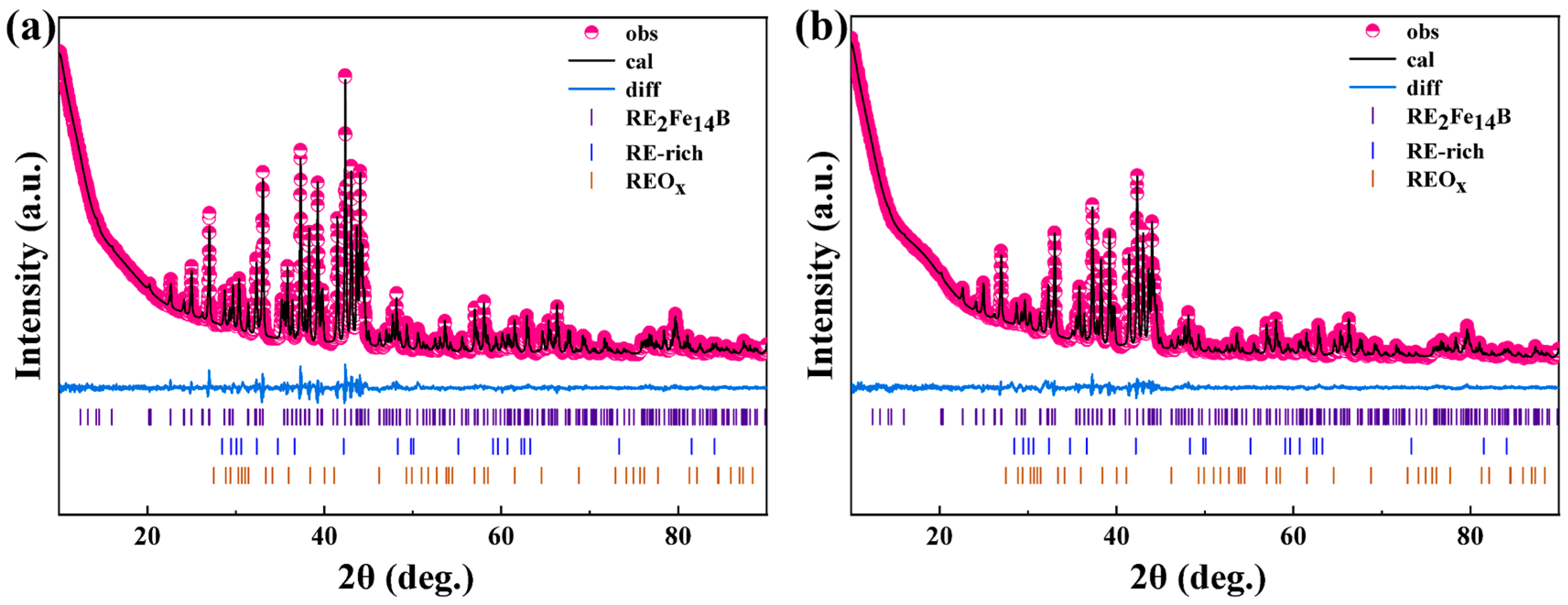 RE2Fe14B | RE-rich | REOx | Rp | Rwp | |