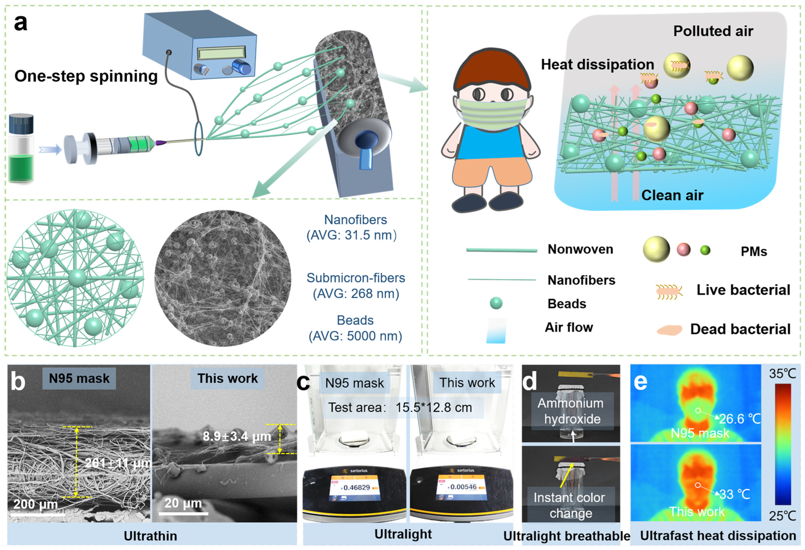 - Yang, Y.; Li, X.; Zhou, Z.; Qiu, Q.; Chen, W.; Huang, J.; Cai, W.; Qin, X.; Lai, Y. Ultrathin, ultralight dual-scale fibrous networks with high-infrared transmittance for high-performance, comfortable and sustainable PM0.3 filter. Nat. Commun. 2024, 15, 1586. [Google Scholar] [CrossRef]