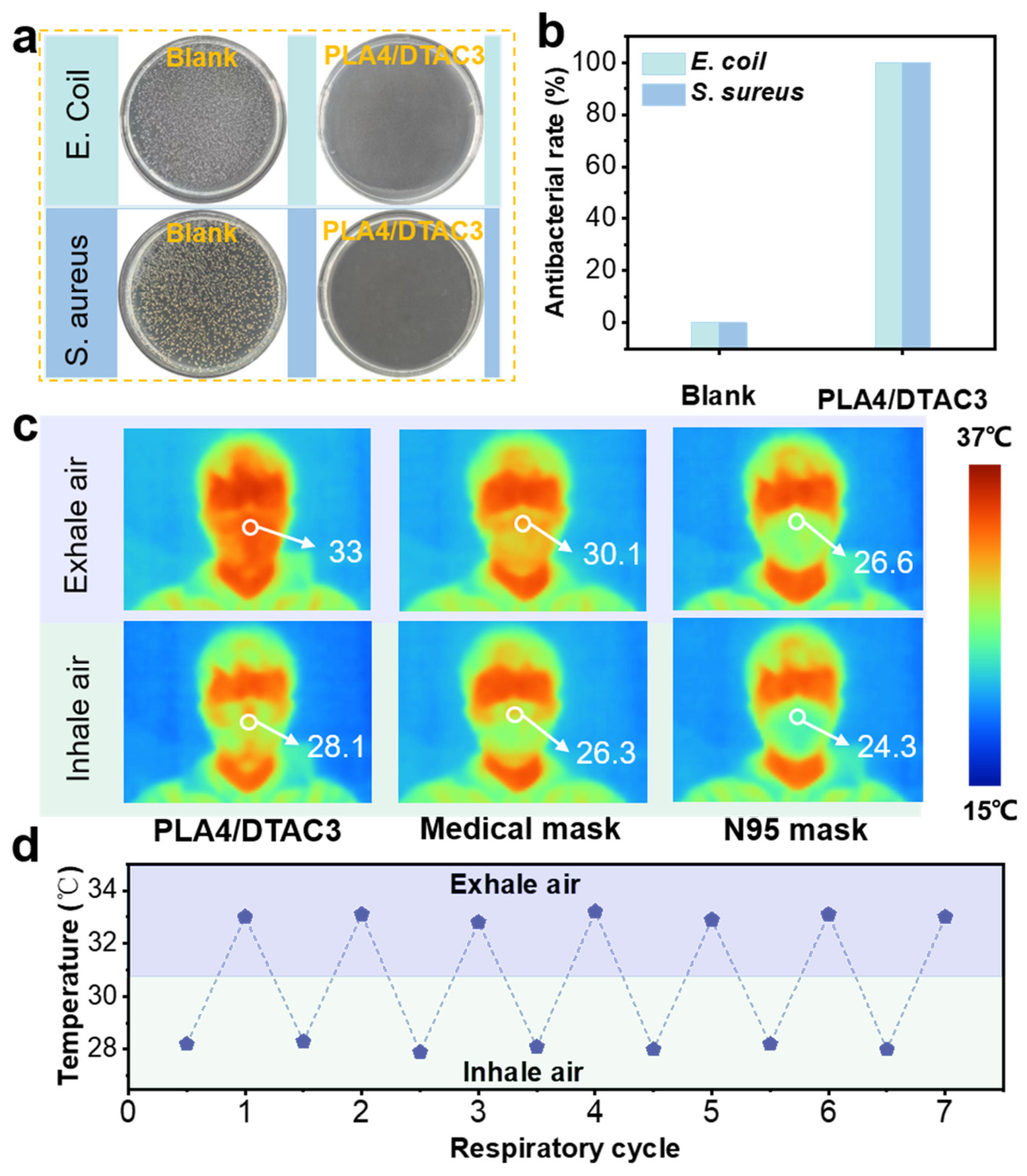 3.6. Antibacterial Property and Heat Dissipation of the Filter