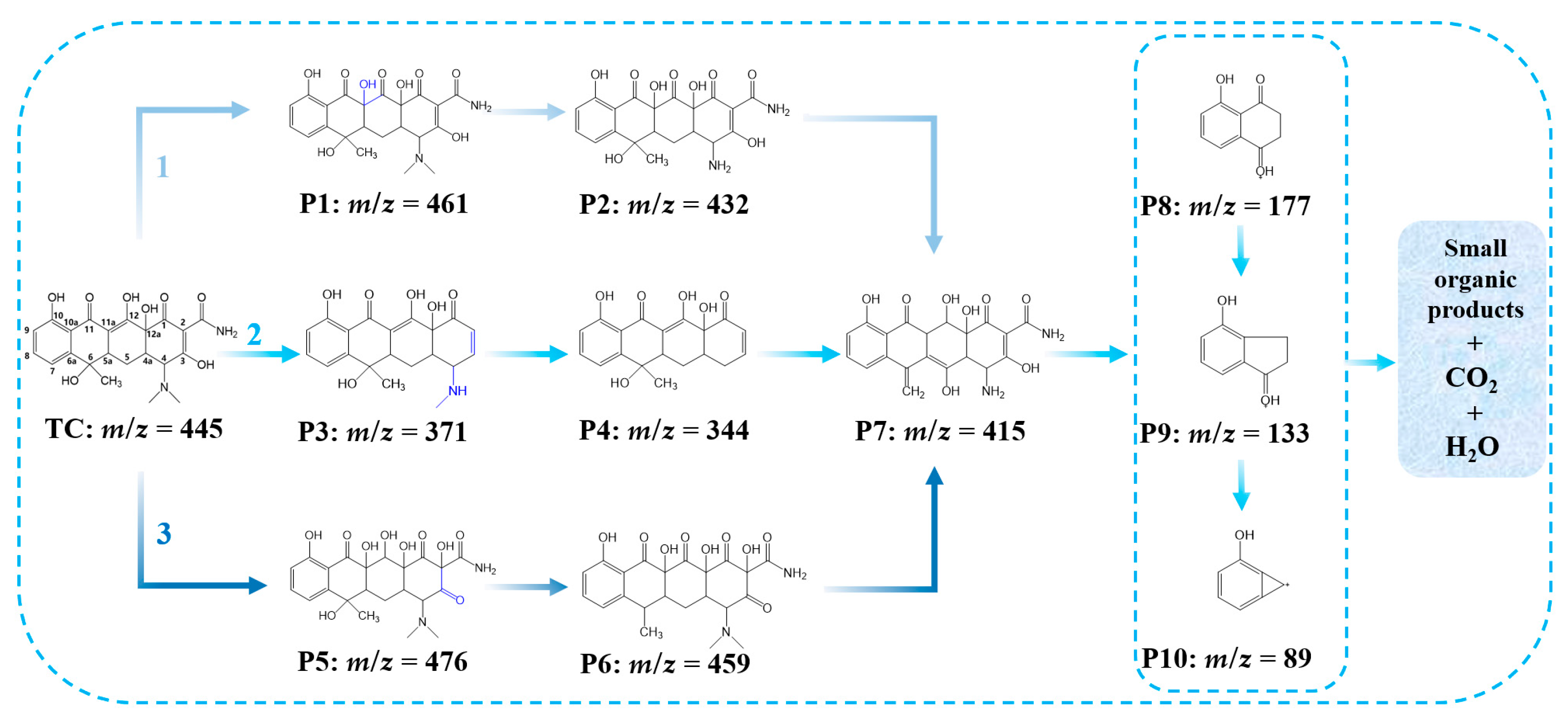 - Khan, M.H.; Bae, H.; Jung, J.Y. Tetracycline degradation by ozonation in the aqueous phase: Proposed degradation intermediates and pathway. J. Hazard. Mater. 2010, 181, 659–665. [Google Scholar] [CrossRef]